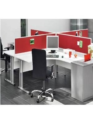 Biroul cu picior C are un panou de legatura optional cu rol de mascare a cablurilor dintre partile verticale ale picioarelor. Ajustarea inaltimii este posibila intr-o marja de 1 cm.