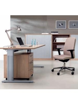 Biroul cu picior C are o bara metalica cu rol de mascare a cablurilor pe orizontala. Panoul de legatura cu rol de mascare a cablurilor dintre partile verticale ale picioarelor este optional.