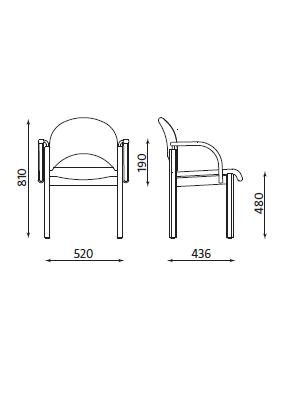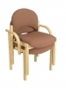 Scaun de vizitator cu rama solida din lemn. Sezutul si spatarul sunt tapitate cu material textil. Bratele fixe sunt confectionate din lemn. Modelul poate utila si moderniza atmosfera in spatii diverse: sali de asteptare, auditorium, sali de conferinta, sali de sedinta, etc.
