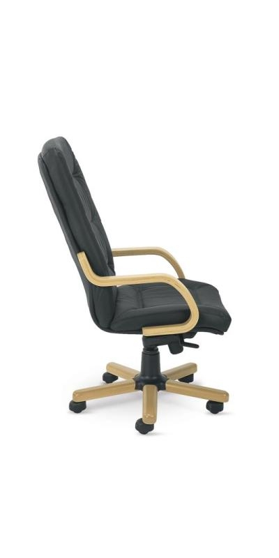 Scaun directorial confortabil cu sezut si spatar tapitate integral cu piele SP . Mecanismul Multiblock permite utilizatorului un balans relaxant. Sezutul si spatarul scaunului raman in contact permanent cu spatele utilizatorului. Functia Anti Shock previne revenirea brusca a spatarului spre spatele utilizatorului. Inaltimea si pozitia sezutului pot fi ajustate. Scaunul este dotat cu mecanism de blocare a spatarului in 5 pozitii. Bratele din lemn sunt fixe. Scaunul are baza cromata in forma de stea in carcasa de lemn si este dotat cu roti pentru podele cu mocheta sau parchet.