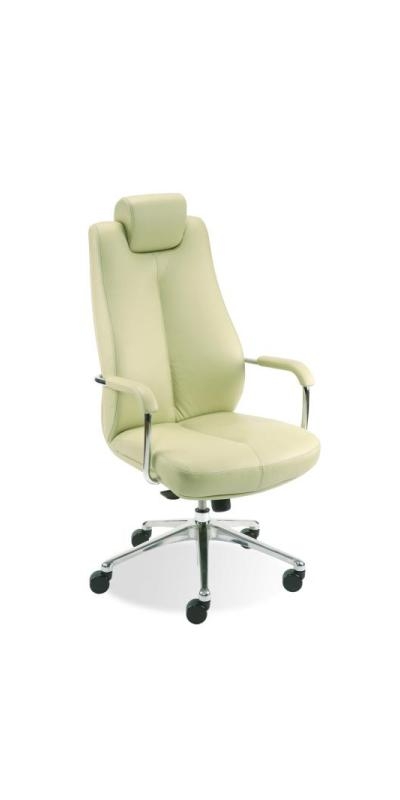 Scaun directorial confortabil cu sezut si spatar tapitate integral cu piele SP. Mecanismul Multiblock permite utilizatorului un balans relaxant. Sezutul si spatarul scaunului raman in contact permanent cu spatele utilizatorului. Functia Anti Shock previne revenirea brusca a spatarului spre spatele utilizatorului. Inaltimea si pozitia sezutului pot fi ajustate. Scaunul este dotat cu mecanism de blocare a spatarului in 5 pozitii. Tetiera integral tapitat din piele. Bratele metalice sunt fixe cu paduri moi din piele. Scaunul are baza cromata in forma de stea si este dotat cu roti pentru podele cu mocheta sau parchet.