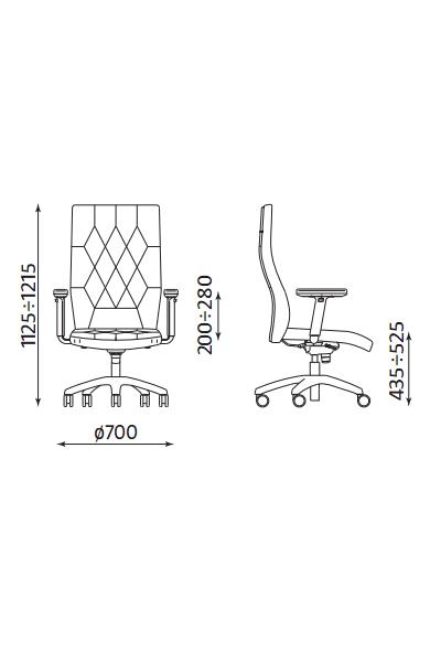 Scaun directorial confortabil cu sezut si spatar tapitate cu piele SP. Mecanismul Tilt permite utilizatorului un balans relaxant. Scaunul este dotat cu mecanism de blocare a spatarului in 5 pozitii. Inaltimea si pozitia sezutului pot fi ajustate. Scaunul este dotat cu mecanismul Epron Syncron care permite reglarea sincronizata a sezutului cu cea a spatarului pentru o pozitie mai confortabila a corpului. Functia Anti Shock previne revenirea brusca a spatarului spre spatele utilizatorului. Scaunul are baza in forma de stea si este dotat cu roti pentru podele cu mocheta sau parchet. Baza scaunului este fabricata din structura metalica. Bratele adjustabile sunt prevazute cu paduri din polipropilena.