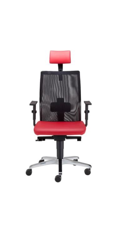 Scaun directorial confortabil si ergonomic. Sezut tapitat cu piele fina, iar spatarul este confectionat din plasa. Bratele ajustabile au paduri moi din polipropilena. Tetiera este tapitata cu piele fina si are 3 nivele de ajustare. Scaunul se poate bloca in 5 pozitii. Inaltimea si pozitia sezutului pot fi ajustate. Mecanismul Anti-Shock permite de asemenea evitarea unei reveniri bruste a spatarului asupra spatelui utilizatorului. Scaunul este dotat cu un mecanism ce permite utilizatorului un balans relaxant. Scaunul are baza in forma de stea, rotile pentru podele cu mocheta sau parchet.