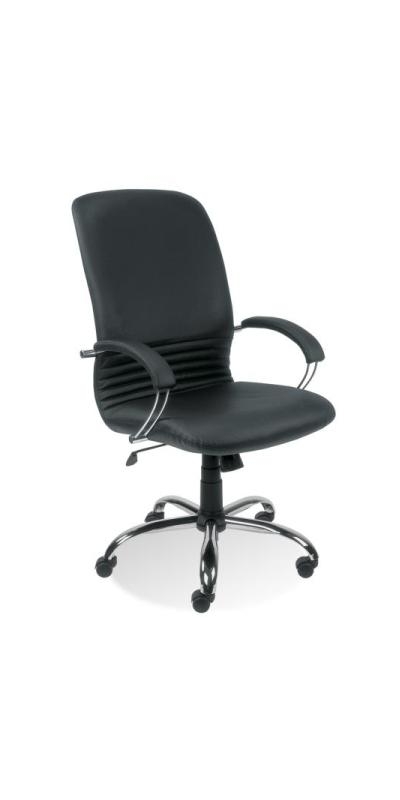 Scaun directorial confortabil cu sezut si spatar tapitate cu piele SP. Mecanismul Tilt permite utilizatorului un balans relaxant. Inaltimea si pozitia sezutului pot fi ajustate. Bratele metalice au paduri moi din piele. Scaunul are baza cromata in forma de stea si este dotat cu roti pentru podele cu mocheta sau parchet.