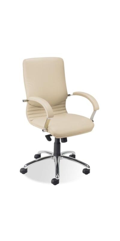 Scaun directorial confortabil cu sezut si spatar tapitate integral cu piele SP. Mecanismul Multiblock permite utilizatorului un balans relaxant. Sezutul si spatarul scaunului raman in contact permanent cu spatele utilizatorului. Functia Anti Shock previne revenirea brusca a spatarului spre spatele utilizatorului. Inaltimea si pozitia sezutului pot fi ajustate. Scaunul este dotat cu mecanism de blocare a spatarului in 5 pozitii. Bratele metalice fixe sunt prevazute cu paduri moi din piele. Scaunul are baza cromata in forma de stea si este dotat cu roti pentru podele cu mocheta sau parchet.