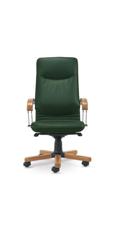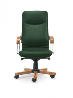Scaun directorial confortabil cu sezut si spatar tapitate integral cu piele SP . Mecanismul Multiblock permite utilizatorului un balans relaxant. Sezutul si spatarul scaunului raman in contact permanent cu spatele utilizatorului. Functia Anti Shock previne revenirea brusca a spatarului spre spatele utilizatorului. Inaltimea si pozitia sezutului pot fi ajustate. Scaunul este dotat cu mecanism de blocare a spatarului in 5 pozitii. Brate metalice fixe cu paduri din lemn. Scaunul are baza cromata in forma de stea in carcasa de lemn si este dotat cu roti pentru podele cu mocheta sau parchet.