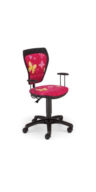 Scaunul junior confortabil este destinat utilizarii de catre copii. Scaunul are sezutul si spatarul tapitate cu material textil. Inaltimea si pozitia sezutului pot fi ajustate cu ajutorul unui piston pneumatic si sunt adaptate la greutatea copiilor. Spatarul este ajustabil in inaltime. Bratele metalice sunt fixe cu paduri moi. Scaunul are baza metalica in forma de stea in carcasa de plastic si este dotat cu roti pentru podele cu mocheta sau parchet.