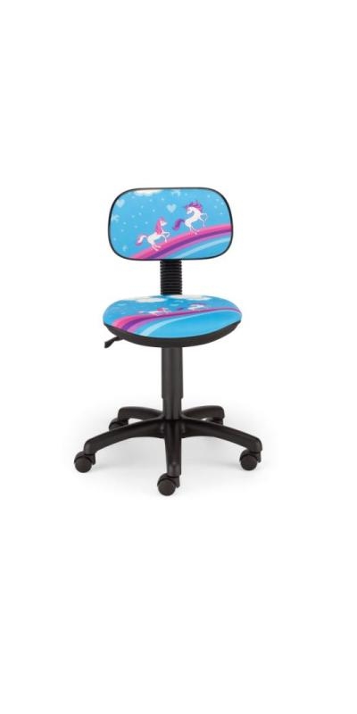 Scaunul junior confortabil este destinat utilizarii de catre copii. Scaunul are sezutul si spatarul tapitate cu material textil. Inaltimea si pozitia sezutului pot fi ajustate. Scaunul are baza metalica in forma de stea in carcasa de plastic si este dotat cu roti pentru podele cu mocheta sau parchet
