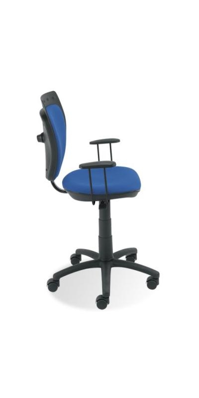 Scaunul junior confortabil si ergonomic este destinat utilizarii de catre copii sau tineret. Scaunul are sezutul si spatarul tapitate cu material textil. Inaltimea si pozitia sezutului pot fi ajustate. Spatarul poate fi ajustat. Bratele metalice sunt ajustabile si au paduri din poliuretan. Scaunul are baza metalica in forma de stea in caracasa de plastic si este dotat cu roti pentru podele cu mocheta sau parchet.