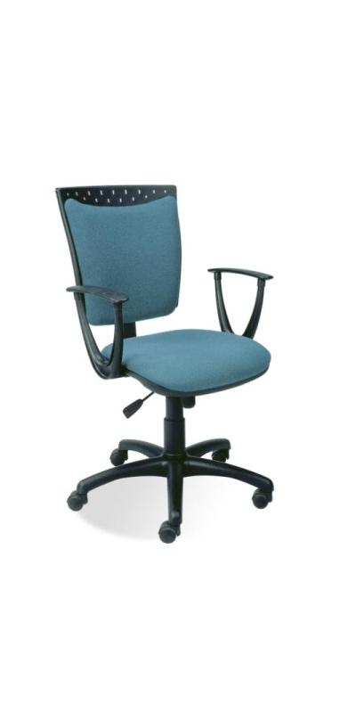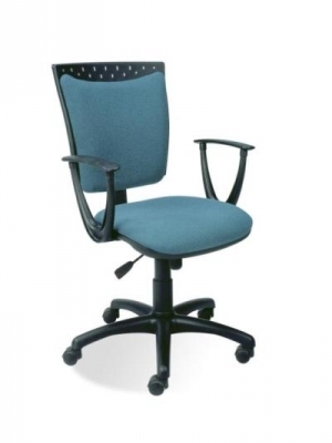 Scaun office confortabil cu sezut si spatar tapitate cu material textil. Scaunul este dotat cu un mecanism de blocare a spatarului in 4 pozitii. Inaltimea si pozitia sezutului pot fi ajustate. Mecanismul Anti-Shock permite de asemenea evitarea unei reveniri bruste a spatarului asupra spatelui utilizatorului. Mecanismul Active-1 permite utilizatorului un balans relaxant. Bratele din plastic sunt fixe cu paduri din poliuretan. Scaunul are baza metalica in forma de stea in carcasa de plastic cu rotile pentru podele cu mocheta sau parchet.