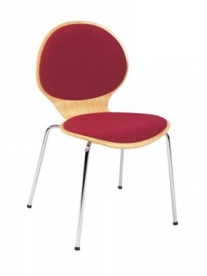 Scaun de vizitator cu rama cromata solida. Scoica sezut si spatar confectionata din lemn stratificat si tapitate cu material textil. Scaunul poate utila si moderniza atmosfera in spatii diverse: sali de asteptare, auditorium, sali de conferinta, sali de sedinta etc.