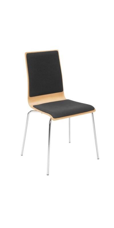 Scaun de vizitator cu rama cromata solida. Scoica sezut si spatar confectionata din lemn stratificat tapitate cu material textil. Scaunul poate utila si moderniza atmosfera in spatii diverse: sali de asteptare, auditorium, sali de conferinta, sali de sedinta etc.