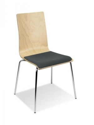 Scaun de vizitator cu rama cromata solida. Scoica sezut si spatar confectionate din lemn, cu sezutul tapitat cu material textil. Scaunul poate utila si moderniza atmosfera in spatii diverse: sali de asteptare, auditorium, sali de conferinta, sali de sedinta etc.