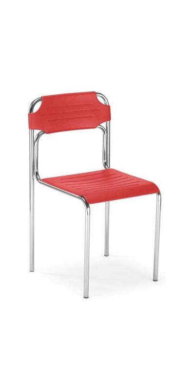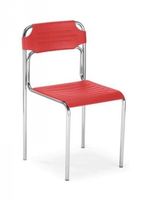Scaun de vizitator cu rama cromata solida. Sezut si spatar confectionate din material plastic de polipropilena. Suprafata este nealunecoasa. Scaunul poate utila si moderniza atmosfera in spatii diverse: sali de asteptare, auditorium, sali de conferinta, sali de sedinta etc. Scaunele se pot stivui.
