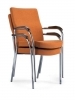 Scaun de vizitator cu rama cromata. Sezut si spatar tapitate cu material textil. bratele sunt metalice cu paduri din lemn. Scaunul poate utila si moderniza atmosfera in spatii diverse: sali de asteptare, auditorium, sali de conferinta, sali de sedinta etc.