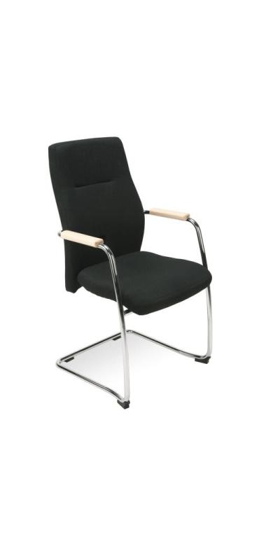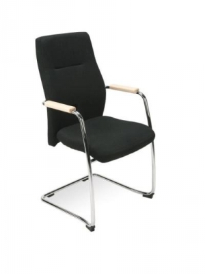 Scaun de vizitator cu rama cromata solida. Sezut si spatar tapitate integral cu piele SP. Bratele sunt metalice si au paduri din lemn. Scaunul poate utila si moderniza atmosfera in spatii diverse: sali de asteptare, auditorium, sali de conferinta, sali de sedinta etc.