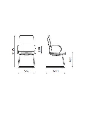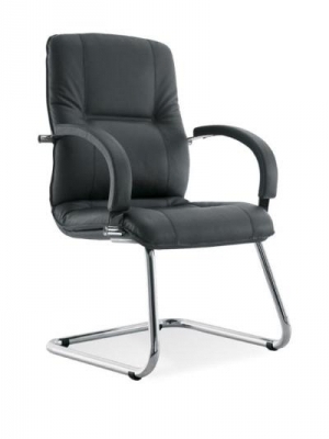 Scaun de vizitator cu rama cromata. Sezut si spatar tapitate integral cu piele SP. Bratele metalice sunt fixe si au paduri moi din piele. Scaunul poate utila si moderniza atmosfera in spatii diverse: sali de asteptare, auditorium, sali de conferinta, sali de sedinta etc.