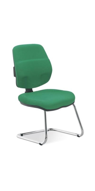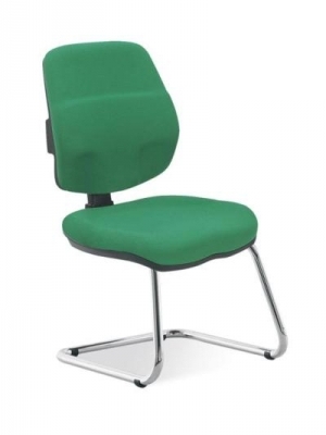 Scaun de vizitator cu rama din aluminiu. Sezut si spatar tapitate cu material textil. Scaunul poate utilia si moderniza atmosfera in diverse spatii: sali de conferinta, sali de asteptare, auditorium, sali de sedinta, etc.