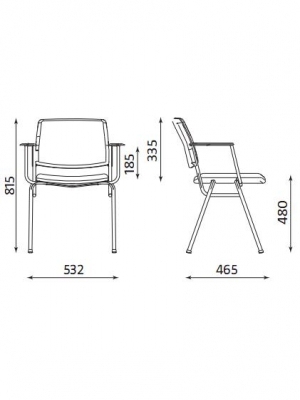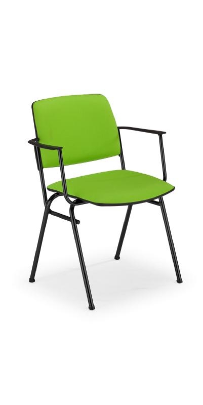Scaun de vizitator cu rama neagra vopsita in camp electrostatic. Sezut si spatar tapitate cu material textil. Bratele metalice sunt fixe cu paduri din plastic. Scaunul poate utila incaperi precum: sali de sedinta, sali de asteptare, sali de conferinta, auditorium, etc.