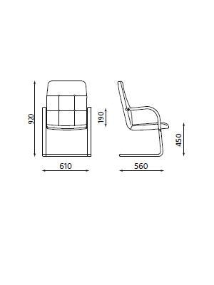 Scaun de vizitator cu rama cromata. Sezut si spatar tapitat cu piele SP. Bratele metalice sunt acope ...