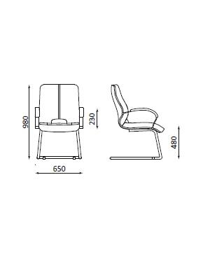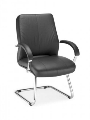 Scaun de vizitator cu rama cromata. Sezut si spatar tapitate cu piele SP. Bratele metalice sunt fixe cu paduri moi din piele. Scaunul poate utila si moderniza atmosfera in spatii diverse: sali de asteptare, auditorium, sali de conferinta, sali de sedinta etc.