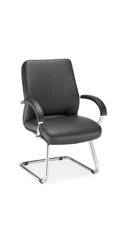 Scaun de vizitator cu rama neagra vopsita in camp electrostatic. Sezut si spatar tapitate cu piele S ...