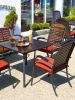 Scaun din tehno-ratan cu cadrul din aluminiu, prevazut cu brate.