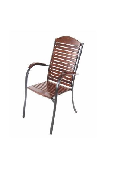 Scaun cu cadru de metal si brate din lemn.Sezutul si spatarul scaunului sunt fabricate din lemn de frasin care este cunoscut pentru duritatea sa si rezistenta la deteriorare.