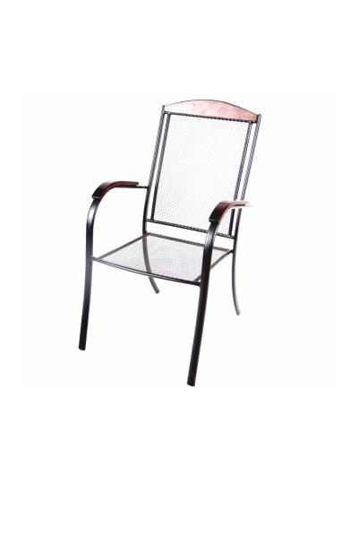 Scaun de metal, cu cotiere si tetiera din lemn de frasin.
