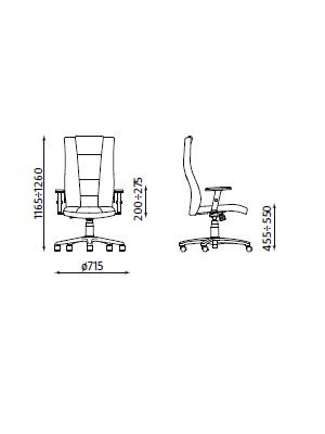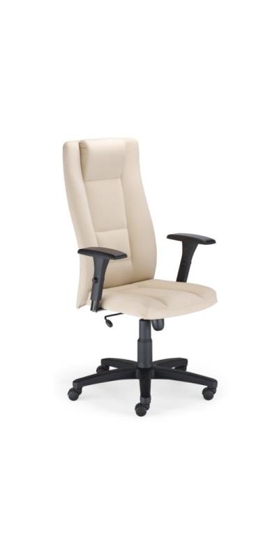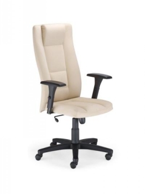 Scaun directorial, confortabil si ergonomic. Sezut si spatar tapitate cu piele SP. Scaunul se poate bloca in 5 pozitii, inaltimea si pozitia sezutului pot fi ajustate. Mecanismul Anti-Shock permite de asemenea evitarea unei reveniri bruste a spatarului. Bratele sunt din poliuretan. Scaunul are baza metalica in forma de stea cu carcasa de plastic dotat cu rotile pentru podele cu mocheta sau parchet.