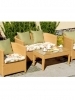 Setul include o masa cu top din sticla si sase fotolii cu perne.