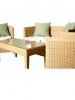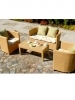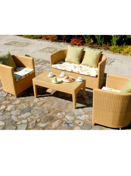 Setul include masa,fotoliu, taburete, canapea formata din trei segmente distincte si pernele.
