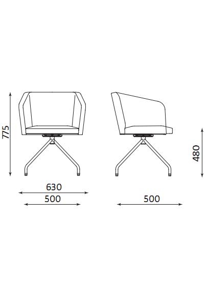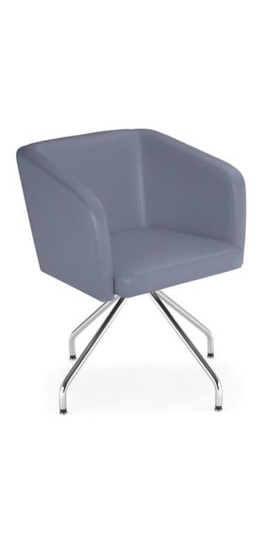 Scaun de vizitator cu cadru metalic cu 4 picioare unite sus. Sezut, spatar si brate tapitate frontal cu piele SP. Scaunul este dotat cu un mecanism ce permite rotirea sezutului de catre utilizator. Scaunul poate utila si moderniza atmosfera in spatii diverse: sali de asteptare, auditorium, sali de conferinta, sali de sedinta etc.