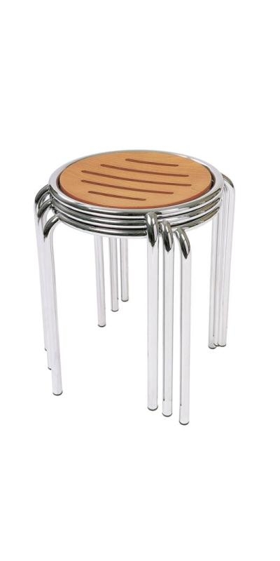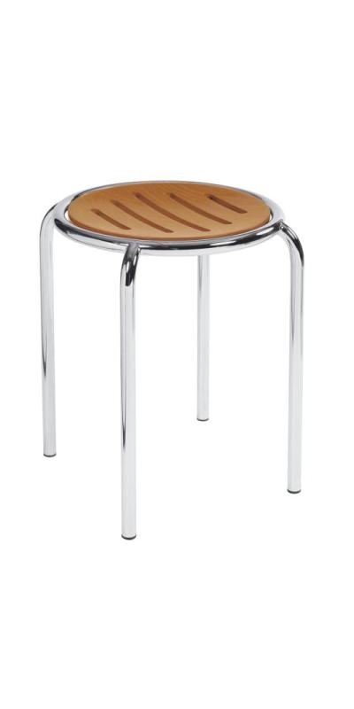 Taburet cu rama cromata solida. Sezutul este confectionat din lemn. Taburetul este adecvat utilizari ...