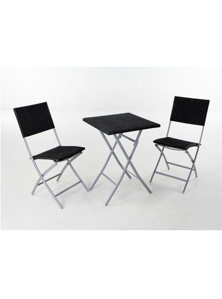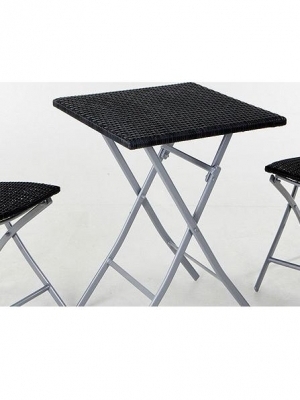Sezutul scaunelor si topul mesei sunt din tehno-ratan; un material sintetic care da o iluzie de ratan natural, insa depaseste in mod simnificativ materialul original, fiind mult mai durabil si mult mai rezistent la conditiile atmosferice cum ar fi radiatiile solare, umiditate si murdarie.